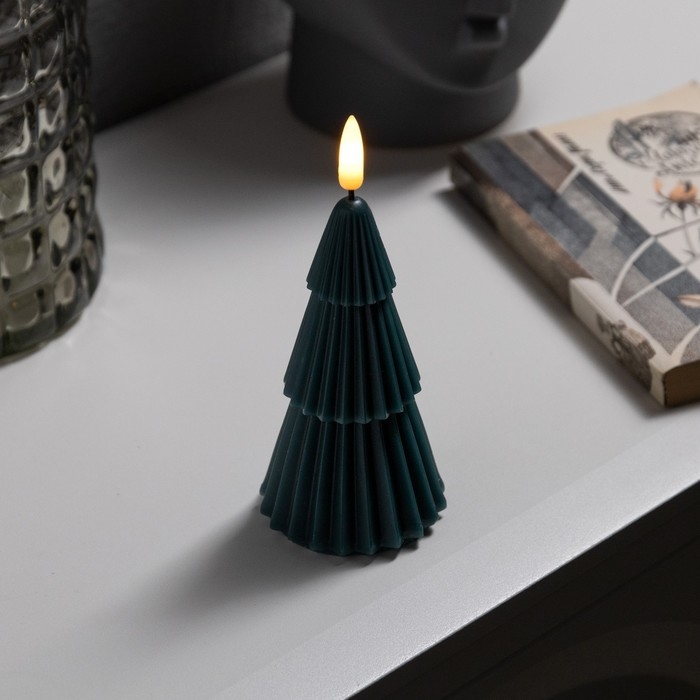 Светодиодная свеча «Ёлка зелёная» 7 × 15.5 × 7 см, воск, батарейка CR2032 (в комплекте), свечение тёплое белое