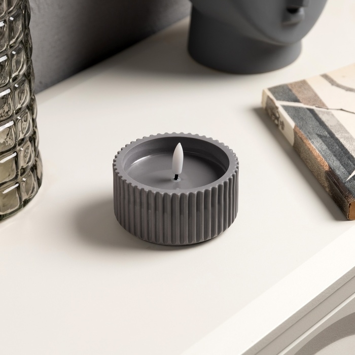 Светодиодная свеча «Интерьерная серая» 9.5 x 5 см, ААx2 (не в компл.), свечение тёплое белое