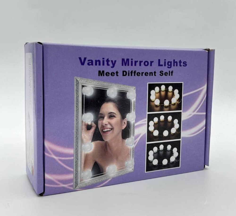 Подсветка для гримерного зеркала LED лампочки 10 ламп 3 режима VANITY MIRROR LIGHTS на липучках. Светодиодные лампочки Vanity Mirror Lights обеспечивают профессиональное освещение для макияжа.Подходит для всех видов зеркал. Липучки - крепления позволят быстро и на ваш вкус установить подсветку на любое зеркало, в любом месте дома. Для больших зеркал советуем взять не один комплект, что бы обеспечить лучший результат. Данная подсветка позволит почувствовать себя дома, в ванной, в спальне, в гостиной, даже в прихожей как в профессиональной гримерке. Отлично подойдет для зеркал в комнате с недостаточным освещением. Может служить как ночник или декор, окантовка. Подсветка на зеркало - теперь ухаживать за кожей лица, нанести маску или макияж, уложить волосы, причёску поправить будет намного проще и удобнее. Светодиодная подсветка для зеркала подходит, как для для личного, так и для и профессионального использования. Благодаря лампам - вы получите зеркало косметическое или гримёрное с лампочками. Правильное и качественное освещение это всегда отличный результат вашей работы над собой, с клиентом для стилиста и парикмахера на дому. Как подарок прекрасно подойдёт женщинам и девушкам деятельность которых связана с красотой. Так же на день рождения, 8 марта, выпускной дочери подростку, любимой девушке, жене, маме, сестре и бабушке будет приятно. Женские принадлежности и аксессуары всегда приносят радость. С помощью пульта вы сможете настроить идеальный для вас свет (цветовой режим и яркость). Рекомендуется использовать блок питания USB на 2A или выше (в комплект не входит). Можно использовать зарядное устройство для мобильного телефона или для других стандартных мобильных устройств с USB.