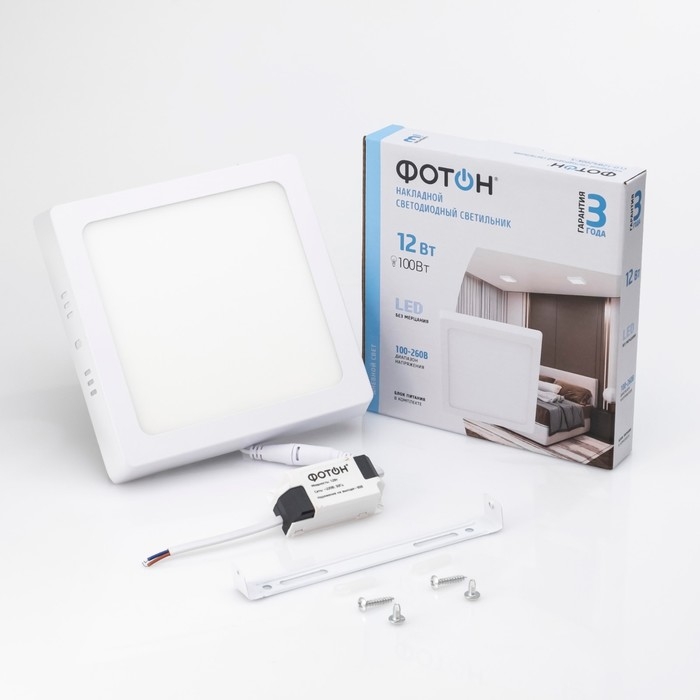 Светодиодный светильник накладной квадратный "ФОТОН" CLO-12W4200K-S