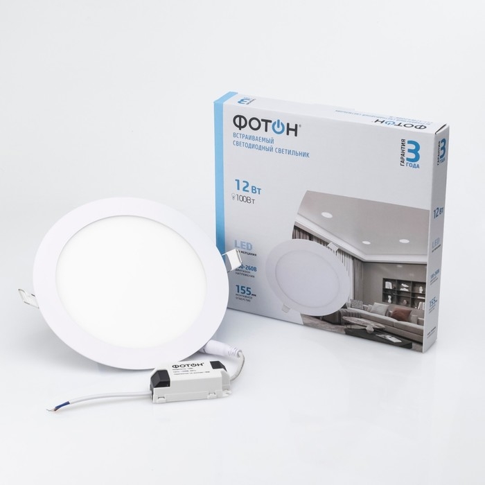 Светодиодный встраиваемый светильник ФОТОН круглый CLI-12W4200K-R предназначен для общего и акцентного освещения внутри жилых и административных помещений. Широкий диапазон рабочих напряжений. Стабильно ровный световой поток в напряжениях от 100 В до 260 В. Безопасен для зрения и здоровья благодаря низкому уровню пульсации светового потока (менее 5%) в течение всего срока службы. Ультратонкий дизайн. Встраиваемый светильник выполнен в узком корпусе и подходит для установки в помещениях с ограниченным потолочным пространством.