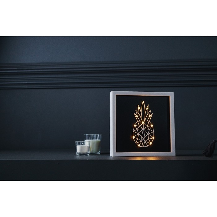 Световая картина-ночник "Ананас" LED USB от батареек 3хАА белый 24,5х24,5х3,5 см RISALUX