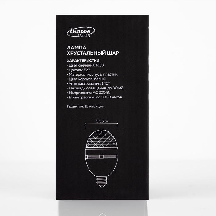 Световой прибор «Хрустальный шар» 8 см, Е27, свечение RGB