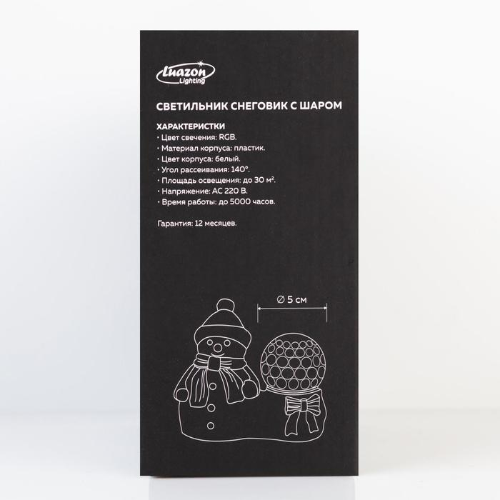 Световой прибор «Снеговик с шаром» 10 см, свечение RGB, 220 В