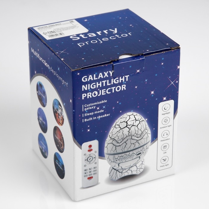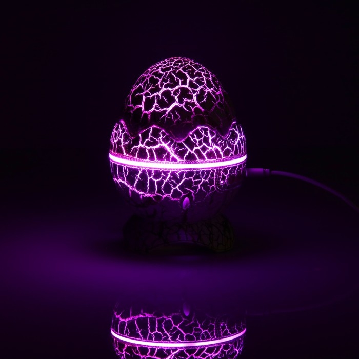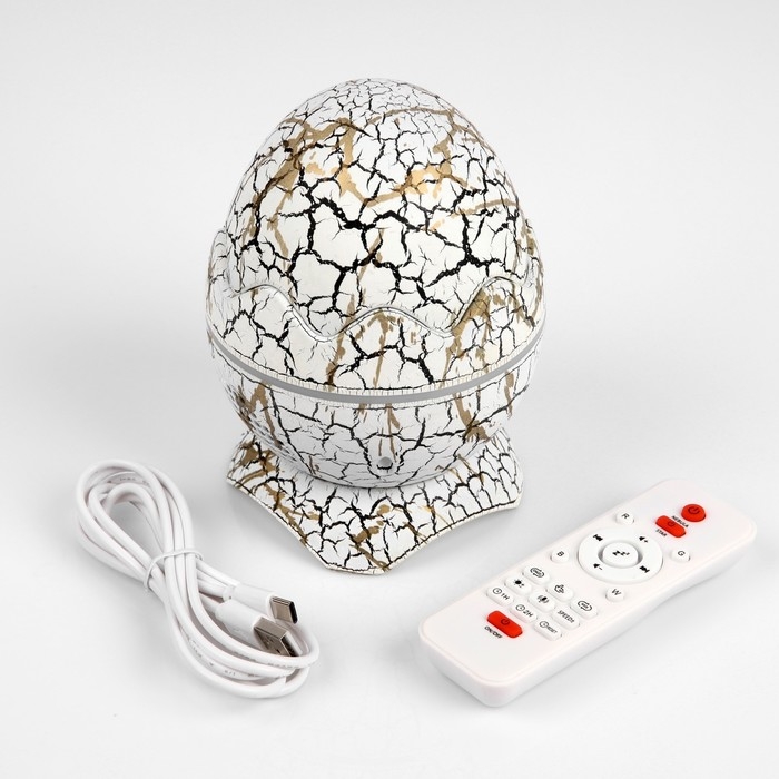 Световой прибор «Яйцо динозавра» 10 см, динамик, съёмная полусфера, свечение RGB, пульт ДУ, USB, белый