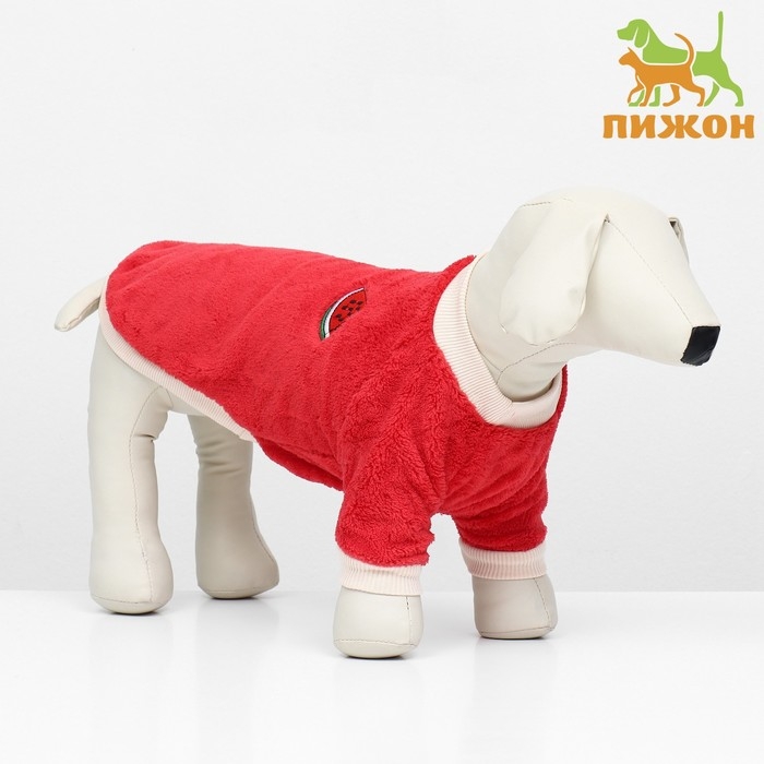 Свитер для животных из велюра в ярко красном цвете с уникальным значком арбуза - это уютный и стильный наряд для вашего пушистого спутника. Свитер изготовлен из мягкого и теплого велюра, он обеспечивает комфорт и тепло, его можно носить как в прохладную погоду на прогулку, так и дома.