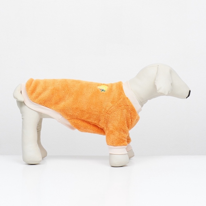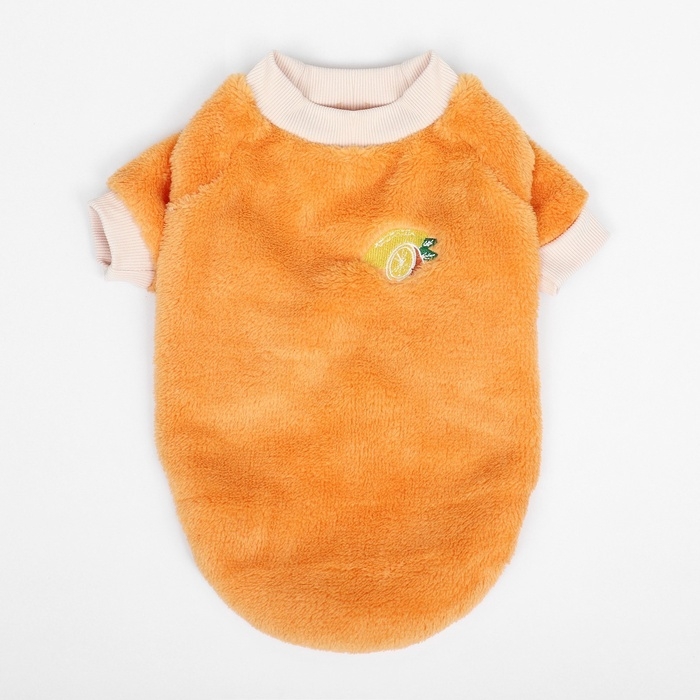 Свитер для животных из велюра в ярком оранжевом цвете с уникальным значком мандарина - это уютный и стильный наряд для вашего пушистого спутника. Свитер изготовлен из мягкого и теплого велюра, он обеспечивает комфорт и тепло, его можно носить как в прохладную погоду на прогулку, так и дома.