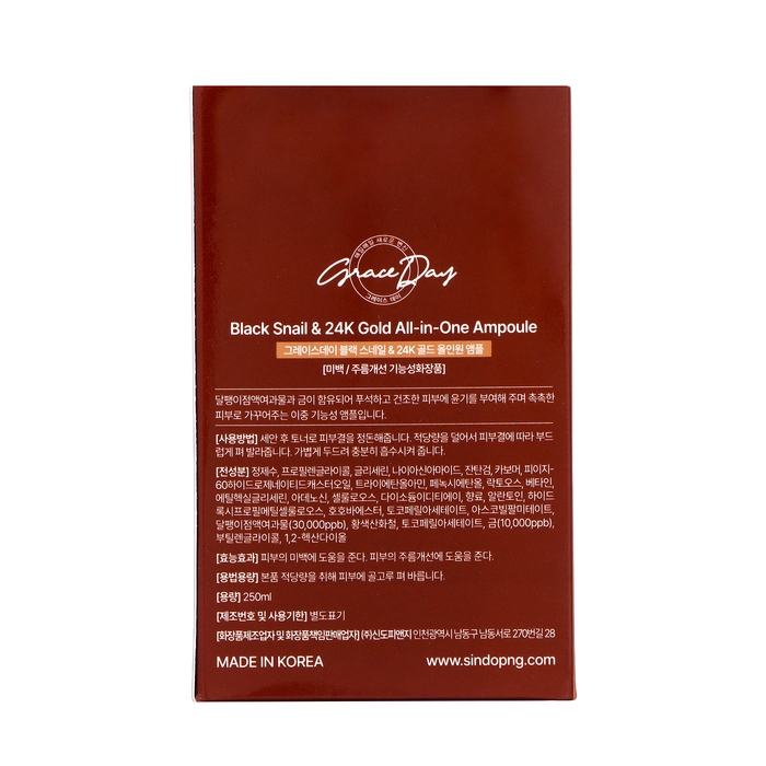 Сыворотка ампульная Grace Day для лица, с улиточным муцином и золотом, 250 мл