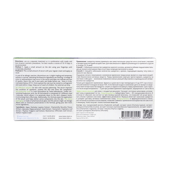 Сыворотка для лица TEANA антикупероз, 20 мл