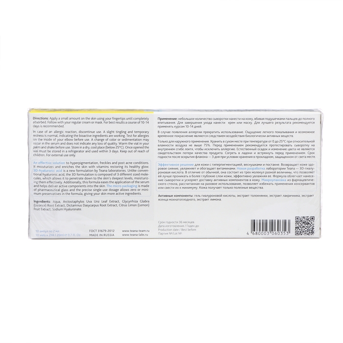 Сыворотка для лица TEANA сияние кожи, 20 мл