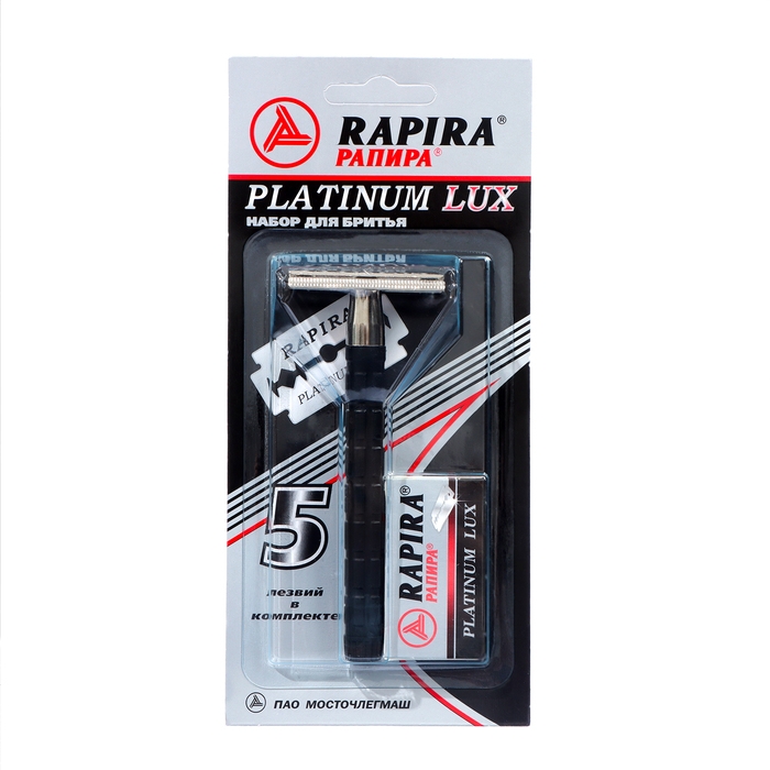 Набор Platinum Lux включает классический Т-образный бритвенный станок и 5 лезвий.