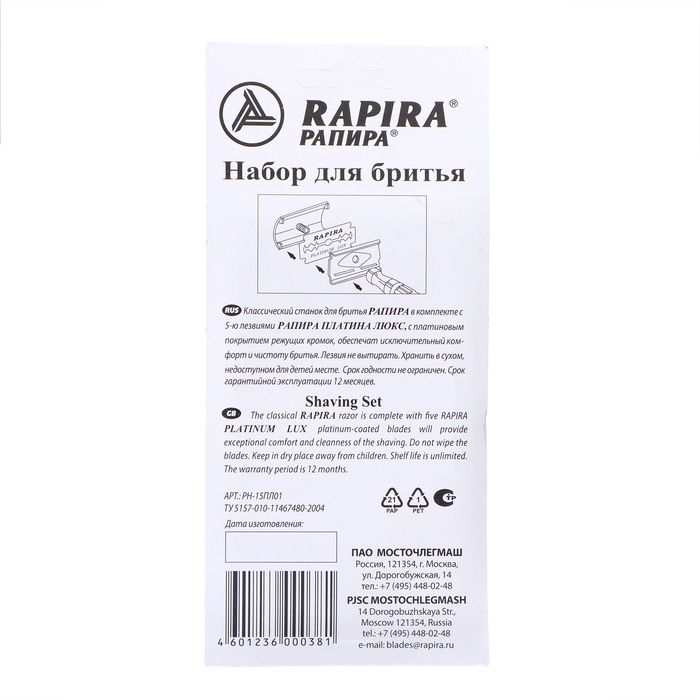 Т-образная бритва Rapira "Платина Люкс" + 5 лезвий, 3 упаковки