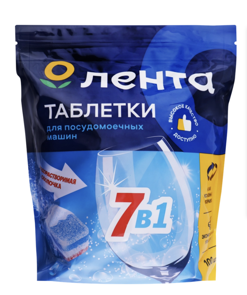 Таблетки для посудомоечных машин ЛЕНТА в водорастворимой оболочке, 100шт