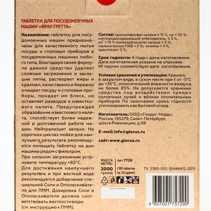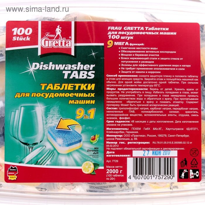 Таблетки для посудомоечных машин Frau Gretta "9 в 1", 100 шт