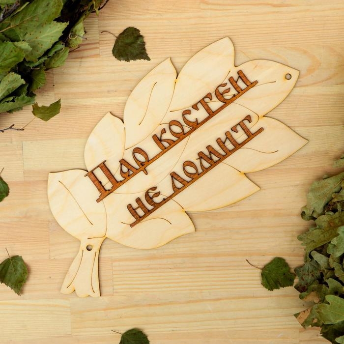 Табличка для бани "Пар костей не ломит" в виде веника 30х17см