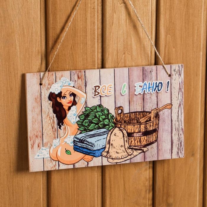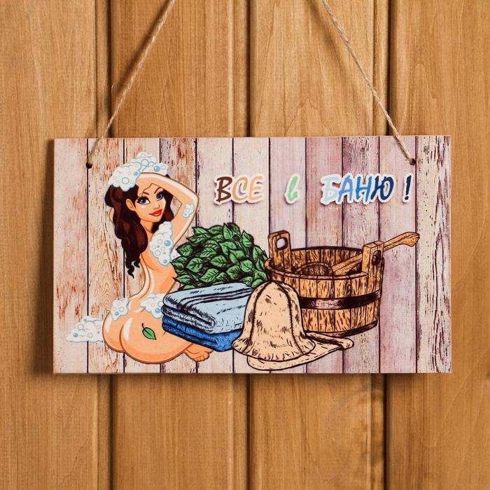 Табличка интерьерная "Все в баню!" 25х15 см