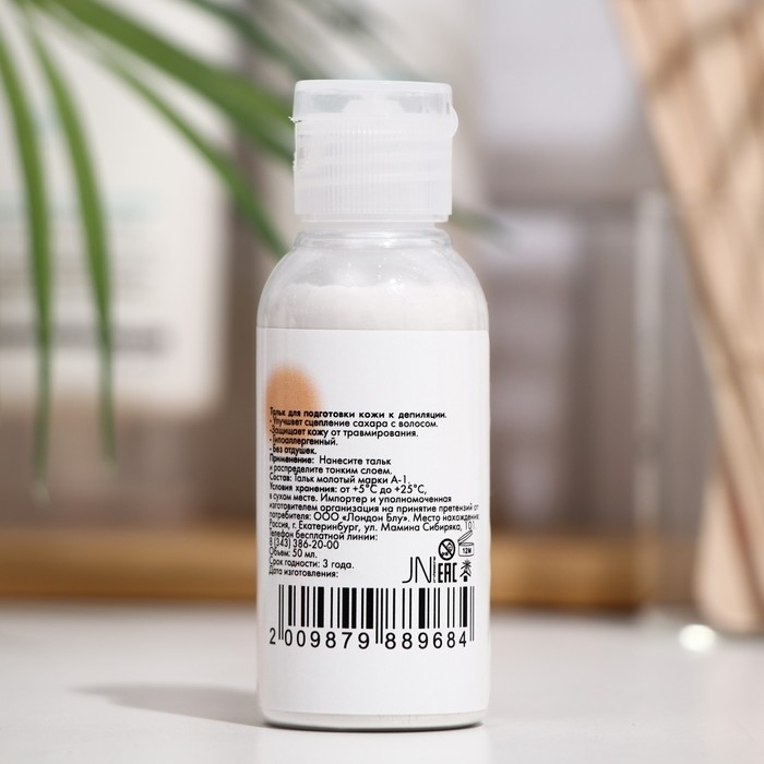 - Тальк: это нежный минеральный порошок, который используется в качестве основного ингредиента. Он позволяет смягчать кожу и уменьшить трение при удалении волос.