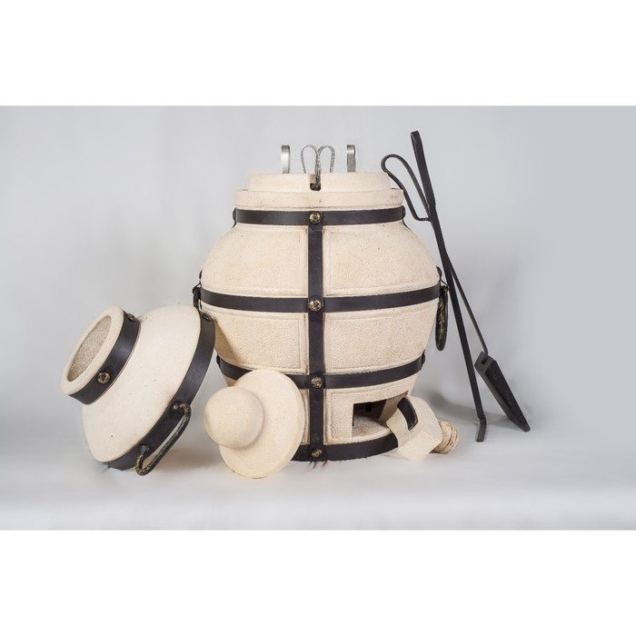 Тандыр оснащен крышкой двух уровней (колпачок и крышку). Удобно выполненный колпачок позволяет не терять тепло при открывании тандыра, а крышка с удобными ручками позволяет легко открывать тандыр и закладывать в него продукты для приготовления.