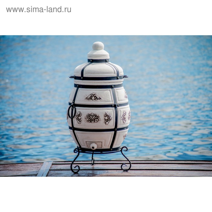 Кованная подставка обеспечивает удобное использование. Красоту тандыру придаёт интересный орнаментальный растительный узор, расположенный в центральной его части.