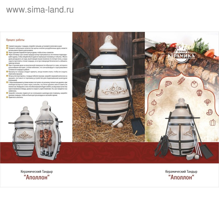 Тандыр "Аполлон" - это керамическая печь, которая в разогретом состоянии держит тепло в течение 2-4 часов. Большой объём тандыра и его толстые стенки дают возможность приготовить за один розжиг до 4 кг мяса.