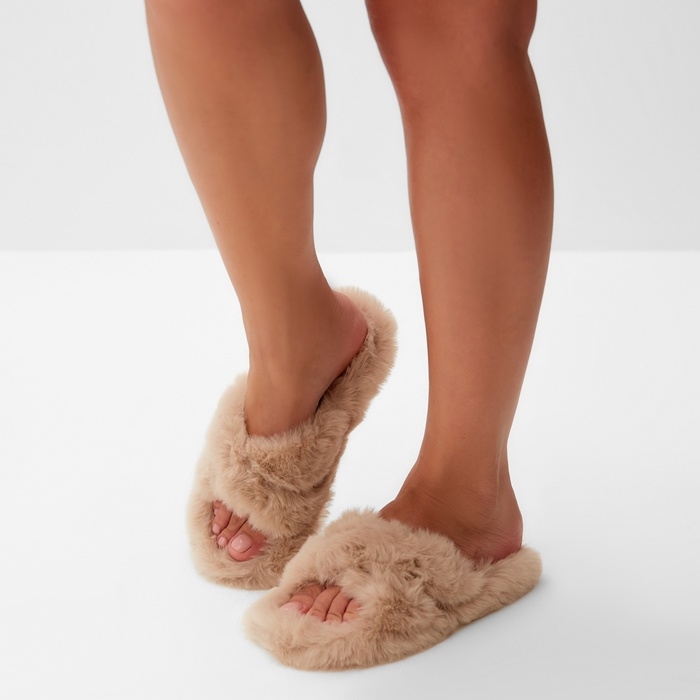 Тапочки женские с открытым носом размер 40, цвет бежевый