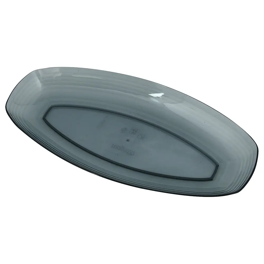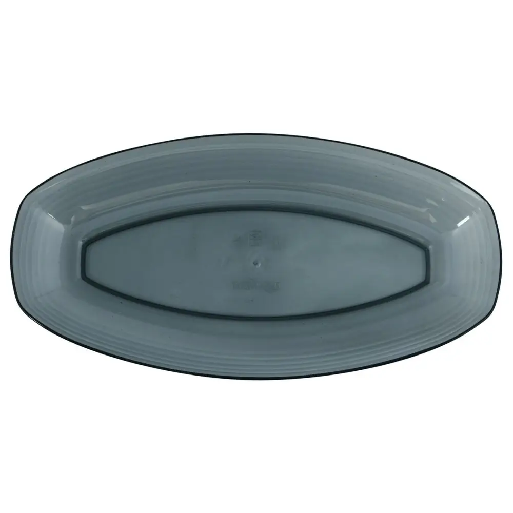 Тарелка вытянутой формы идеально подойдет для сервировки стола. Подавайте на ней сырные, мясные или рыбные нарезки, закуски, салаты. Перед первым применением и после каждого использования рекомендуется вымыть губкой или мягкой щеткой, можно с жидким моющим средством, сполоснуть проточной водой и просушить. Изготовлено из пластмассы (полистирол). Размер 24,5х12,5х2,5 см.