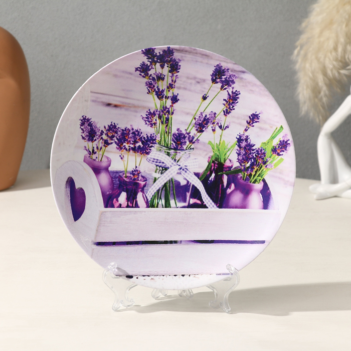 Тарелка декоративная «Букетики лаванды», с рисунком на холсте, D = 19,5 см