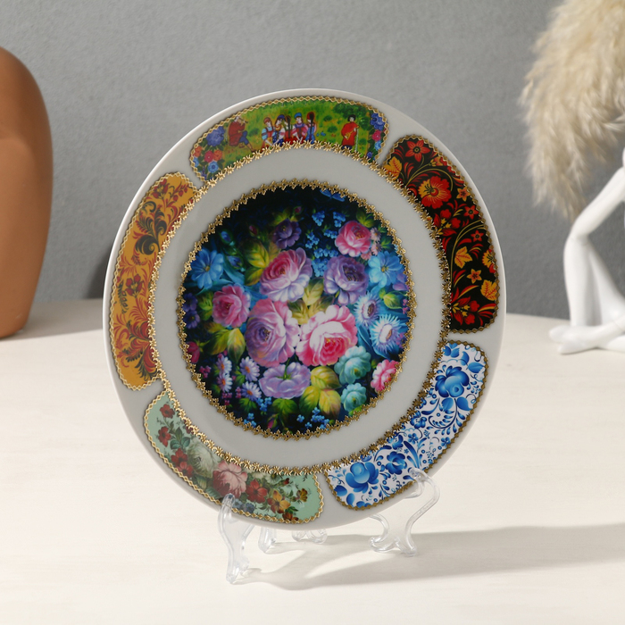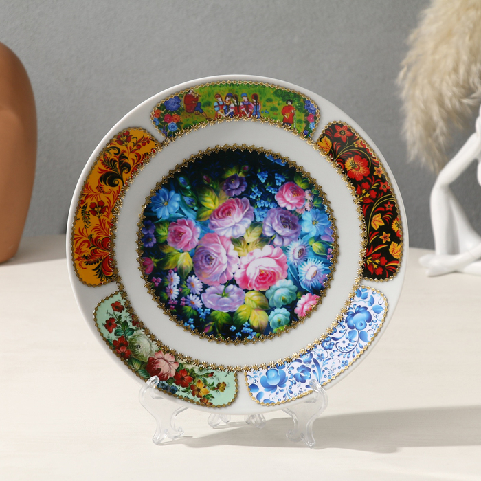 Тарелка декоративная "Русские мотивы. Жостовская роспись", настенная, d=20 см, ручная работа
