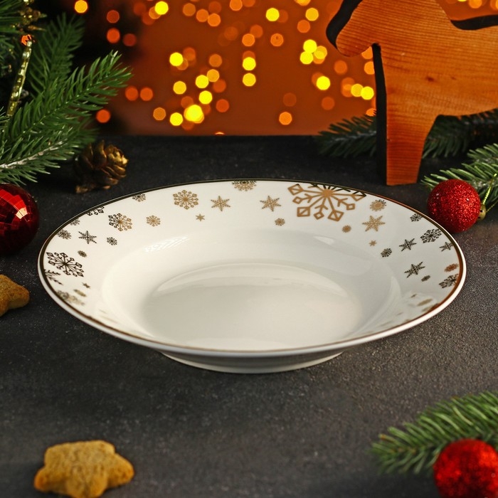 Тарелка фарфоровая глубокая Magistro «Новый Год. Снегопад», 450 мл, d=20,8 см