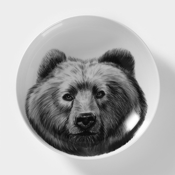 Тарелка фарфоровая глубокая «Медведь», 700 мл, d=20,5 см, белая