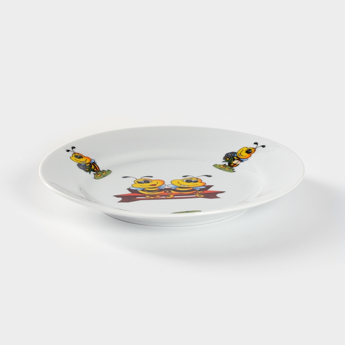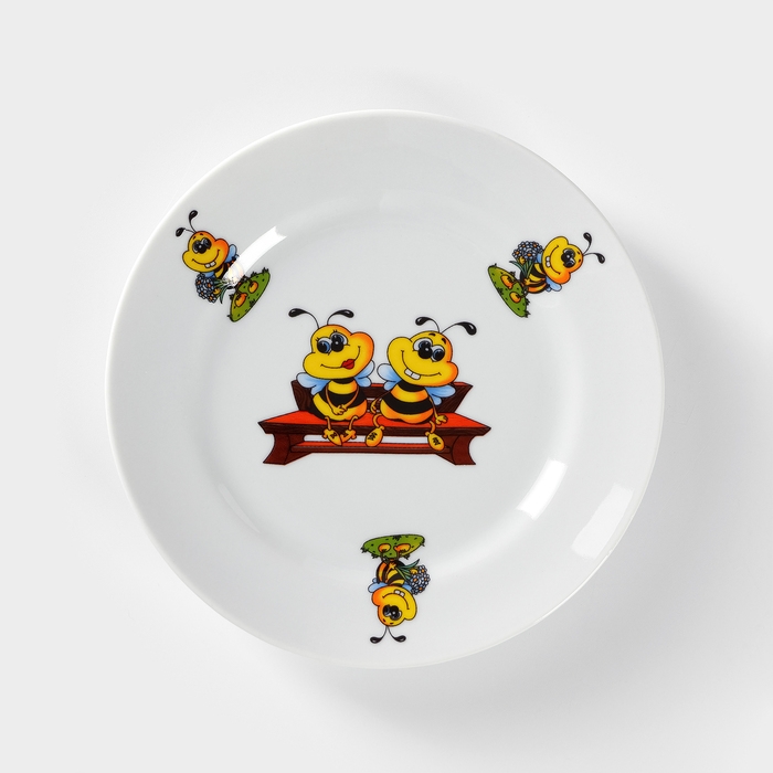 Тарелка фарфоровая «Пчёлы», d=17,5 см, цвет белый