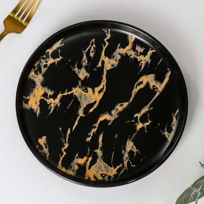 Тарелка керамическая для подачи Black Gold, d=20 см, цвет чёрный