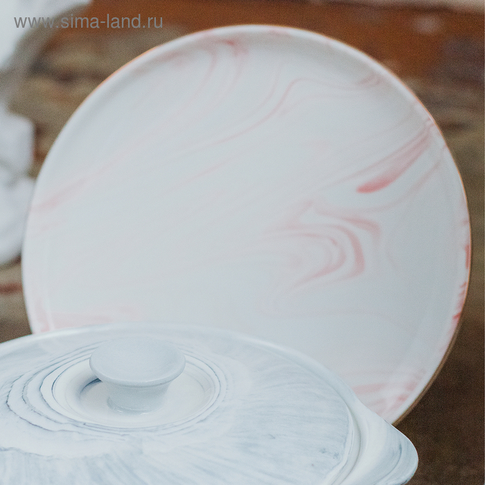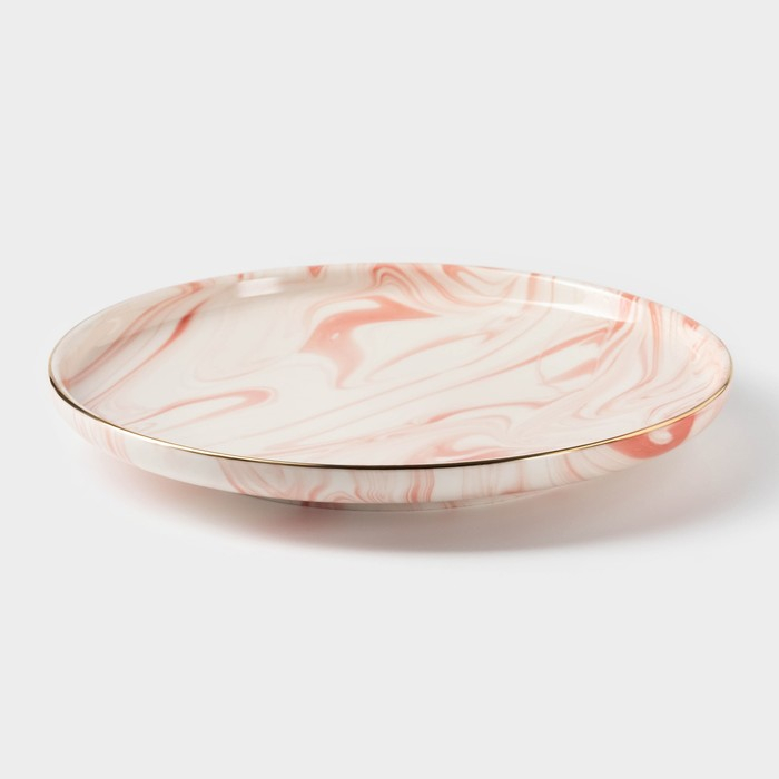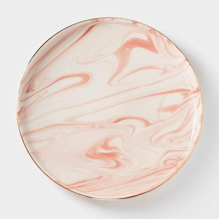 Тарелка керамическая обеденная «Мрамор», d=25 см, цвет розовый