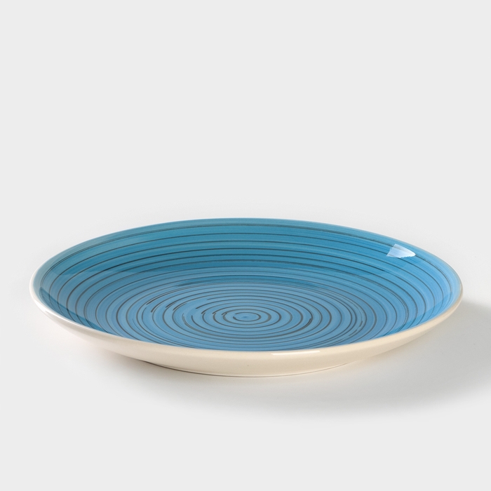 Тарелка Риштанская Керамика "Узоры", синяя, глубокая, микс, 20 см