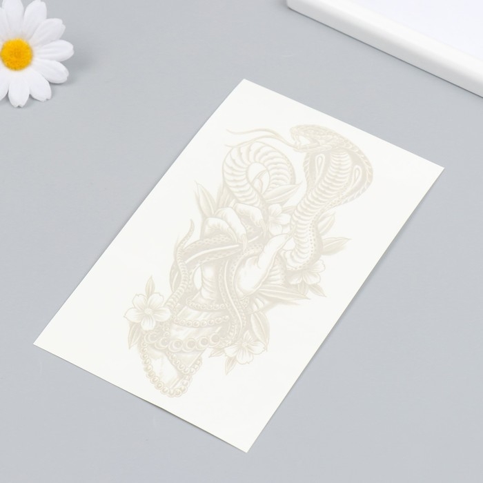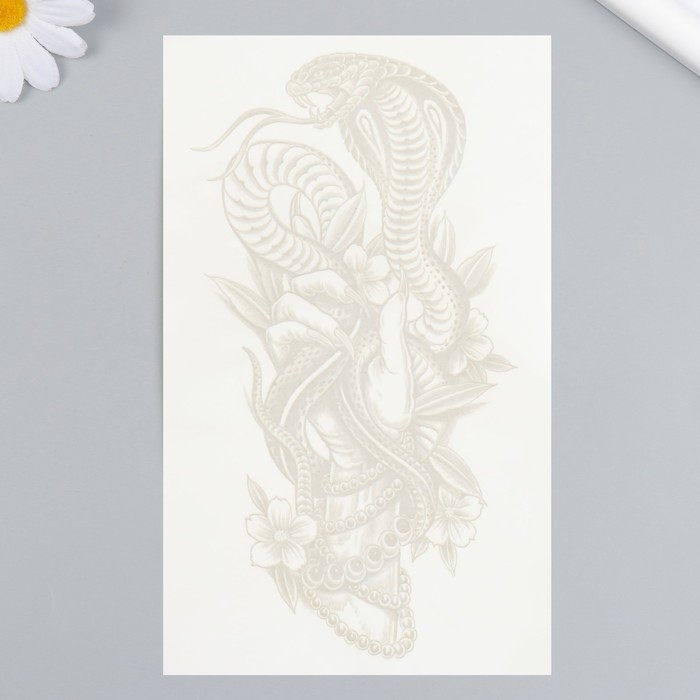 Татуировка на тело синяя "Кобра в руке" 18х11 см
