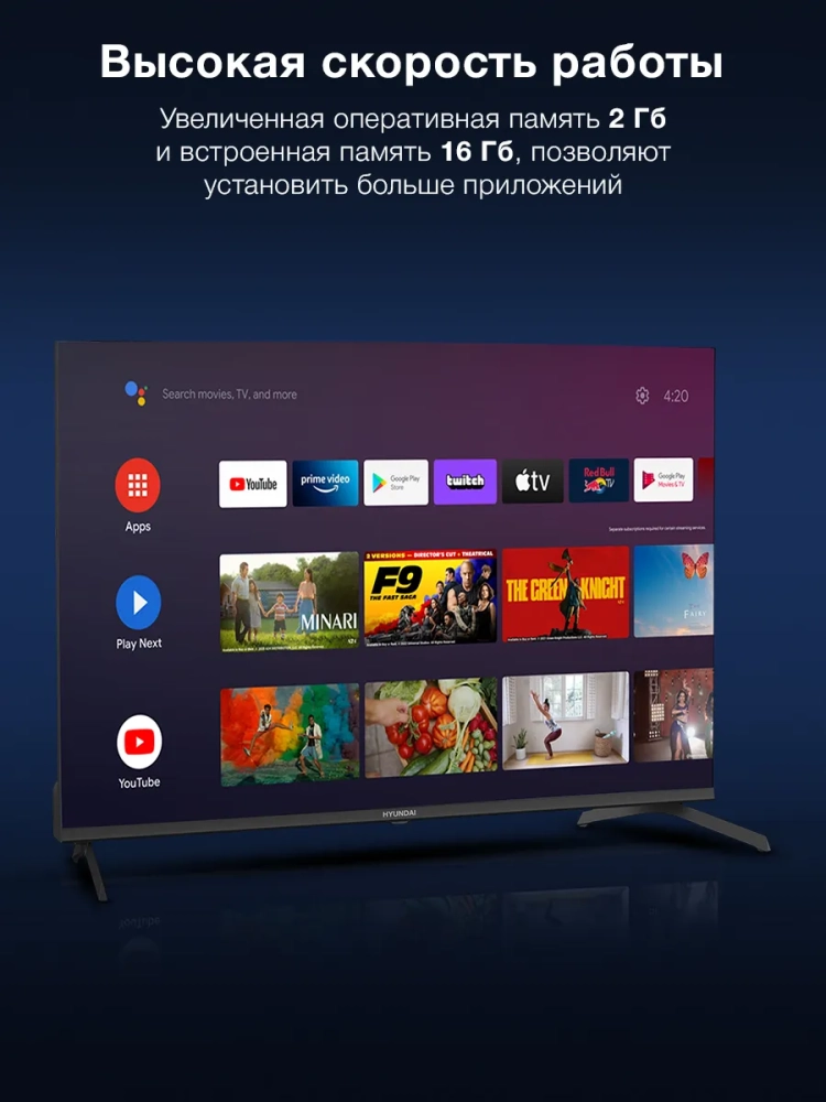 Телевизор H-LED43BU7009 Frameless черный/черный, диагональ экрана 43" (108 см), разрешение 4K Ultra HD, частота обновления 60Hz, цифровой тюнер DVB-T2, DVB-C, DVB-S2, USB разъем, встроенный WiFi, операционная система Android TV 11, с поддержкой Smart TV, Google Assistant