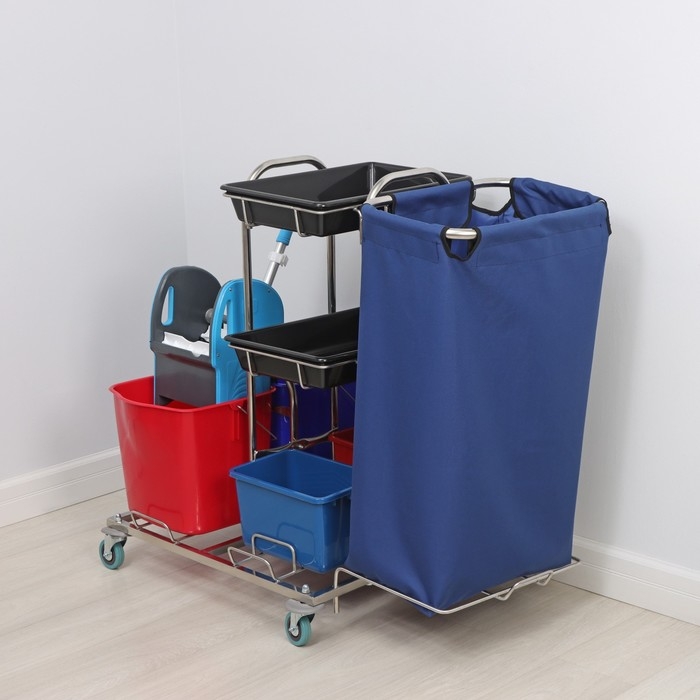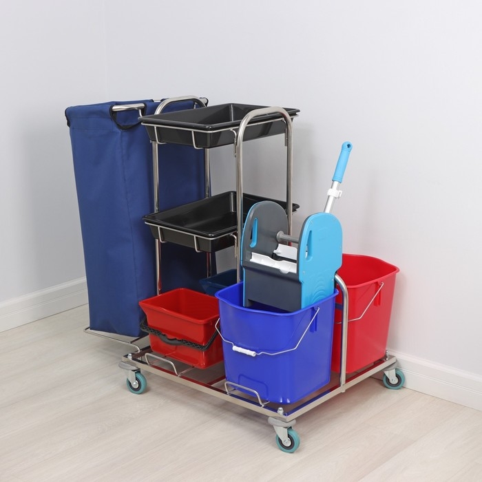 Тележка уборочная «Виолета», стандарт, 2×25 л, 2×8 л, 2 лотка, комплектация с нейлоновым мешком, 135 л