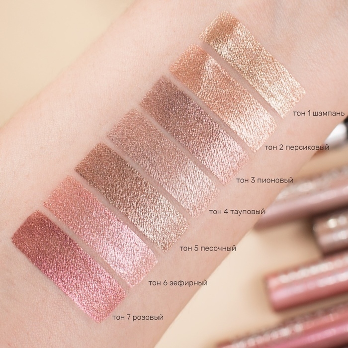 Комфортная, легко скользящая флюидная текстура в сочетании с простым в применении аппликатором, который легко контролирует интенсивность отдачи, создадут как уместный, легко играющий блеск, так и смелое отражающее мерцание. Алоэ вера в составе позволяет нежной текстуре мягко ложится на кожу век, не стягивая ее.