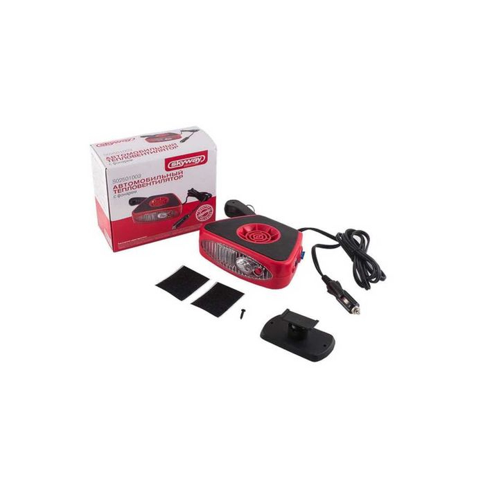 Тепловентилятор Skyway, в прикуриватель с фонарем, 12 В, черный-красный, S02501003