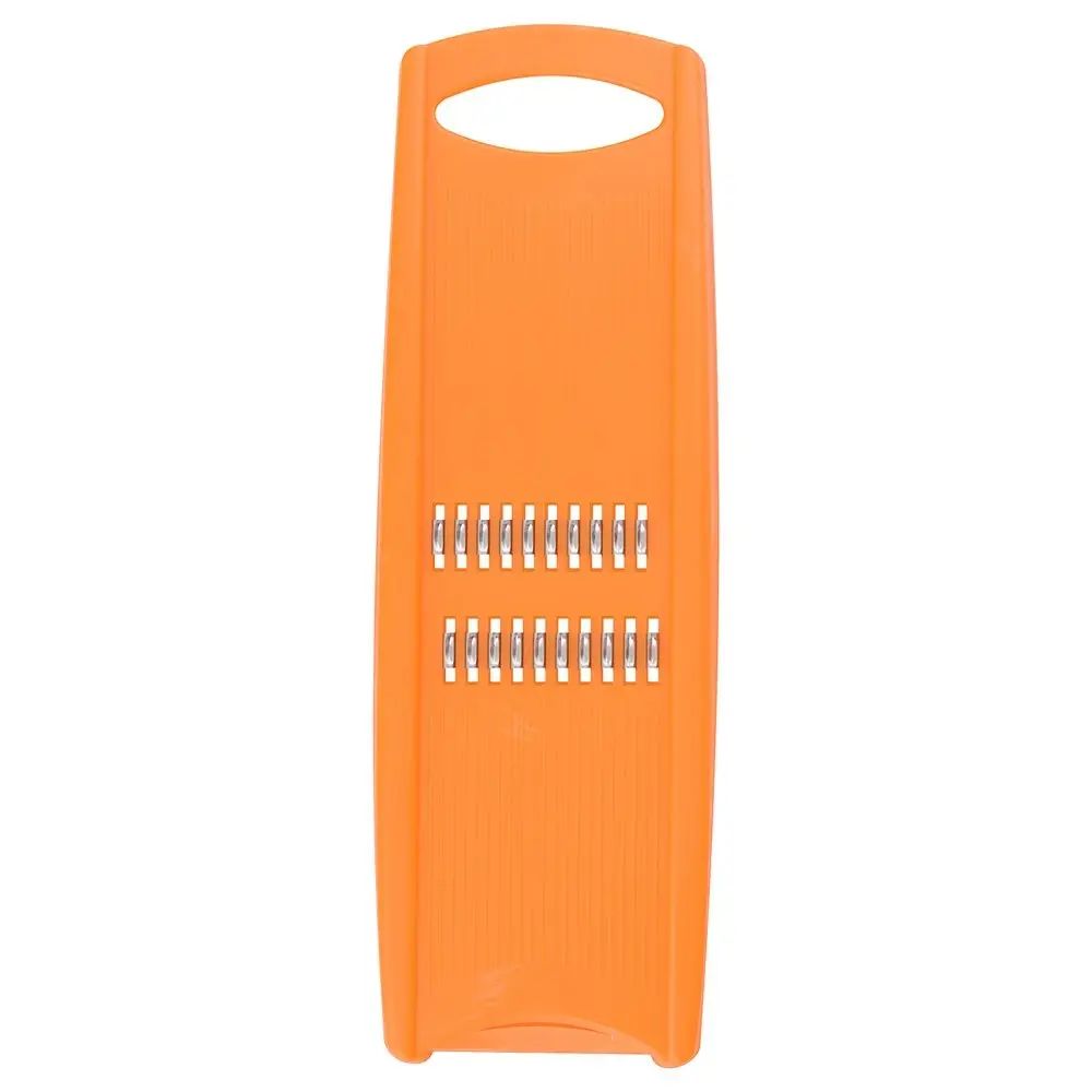 Рабочая поверхность изделия выполнена из коррозионностойкой стали, корпус из пластмассы. Сталь не вступает в реакцию с пищей, не ржавеет, длительное время сохраняет прочность. Пользоваться приспособлением легко: овощи натираются в заранее подготовленную емкость. Терка подойдет для измельчения морковки, огурца, редиса, кабачков. В результате получаются соломки, которые можно добавить в салат или украсить ими готовые блюда. Использование овощей разных цветов позволяет получать разноцветную соломку, которая будет отличным декором.