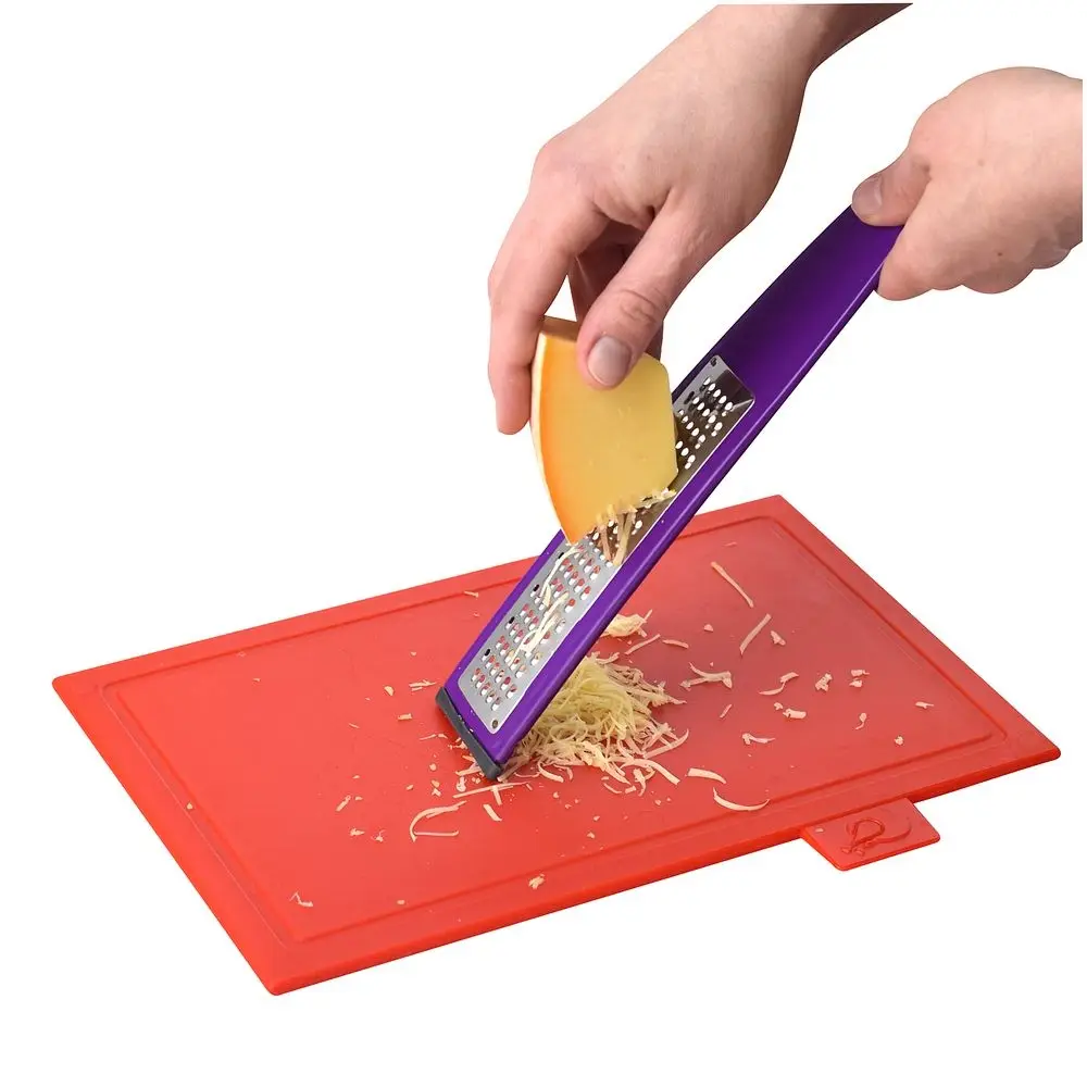 Терка для сыра удобна в использовании, не занимает много места и легко моется. С помощью нее вы легко сможете потереть сыр на пиццу, в салат или любое другое блюдо. Размер изделия позволяет натереть сыр прямо над блюдом. После использования промойте терку под проточной водой, можно с жидкими моющими средствами. Изготовлено из коррозионностойкой (нержавеющей) стали и пластмассы (ABS).