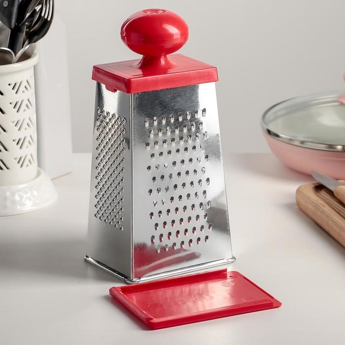Тёрка «Комфорт» 4 грани, с крышкой-дозатором и круглой пластмассовой ручкой, 11×8,5×23 см, цвет МИКС