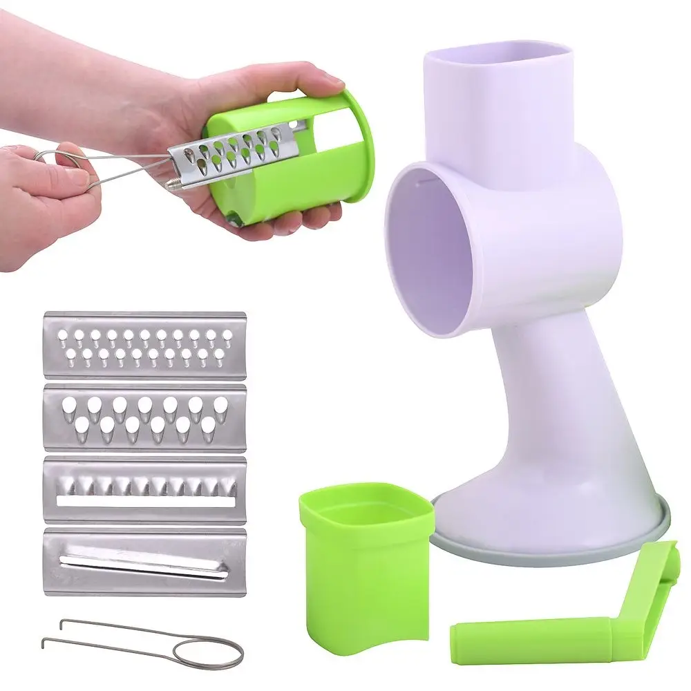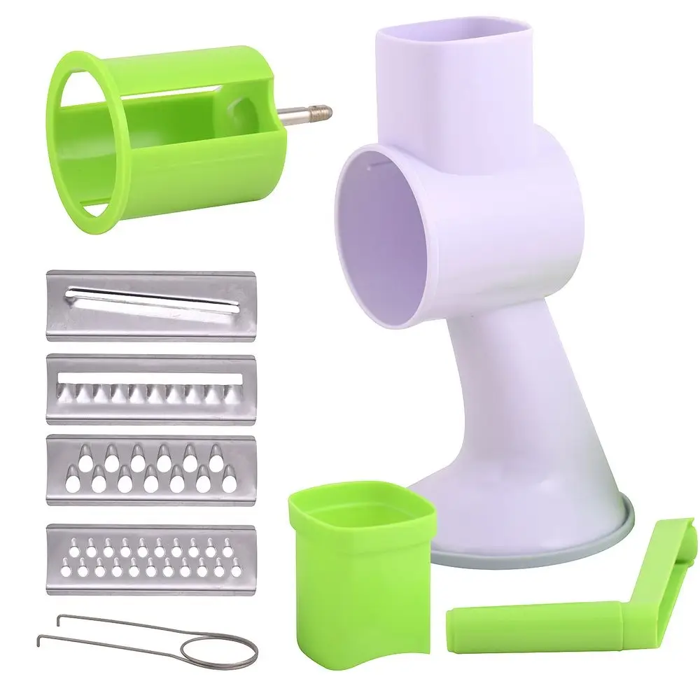 Многофункциональная терка роторная - мультирезка поможет вручную измельчить продукты до нужного состояния. В комплекте 4 типа насадок: