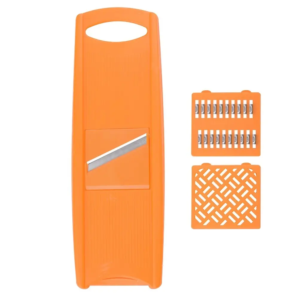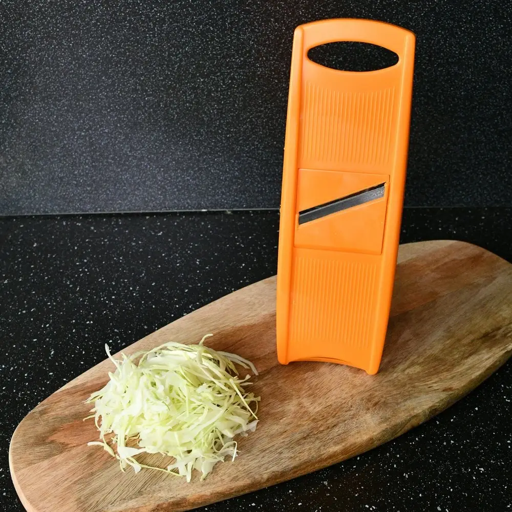 В комплект входит корпус-основа и три насадки. Слайсер ножами-вставками из металла используется для нарезки овощей ломтиками и шинковки капусты. Вторая насадка применяется для приготовления пюре из мягких овощей и фруктов. С помощью третьей нарезается корейская морковь, соломка из кабачков, свеклы, редьки, огурцов.