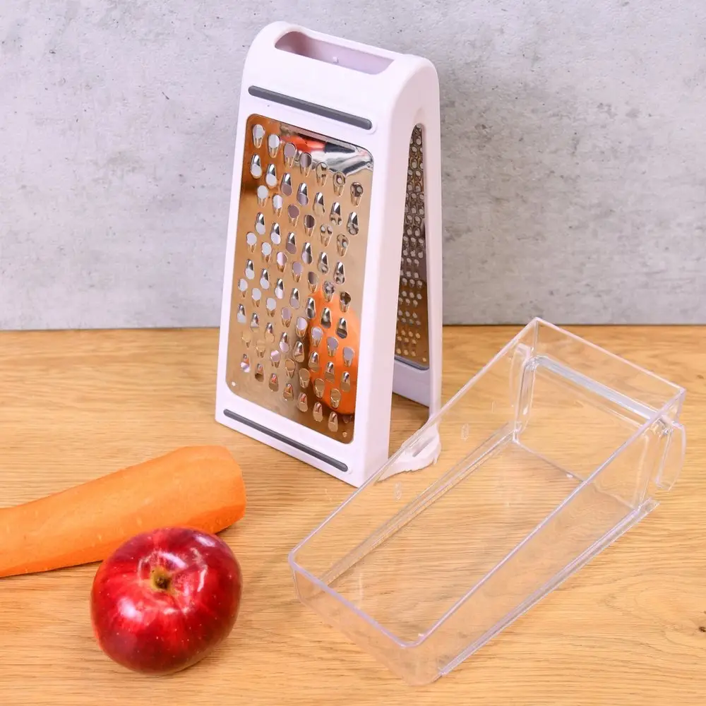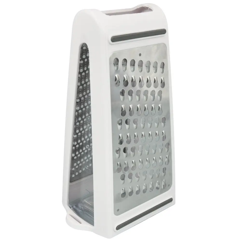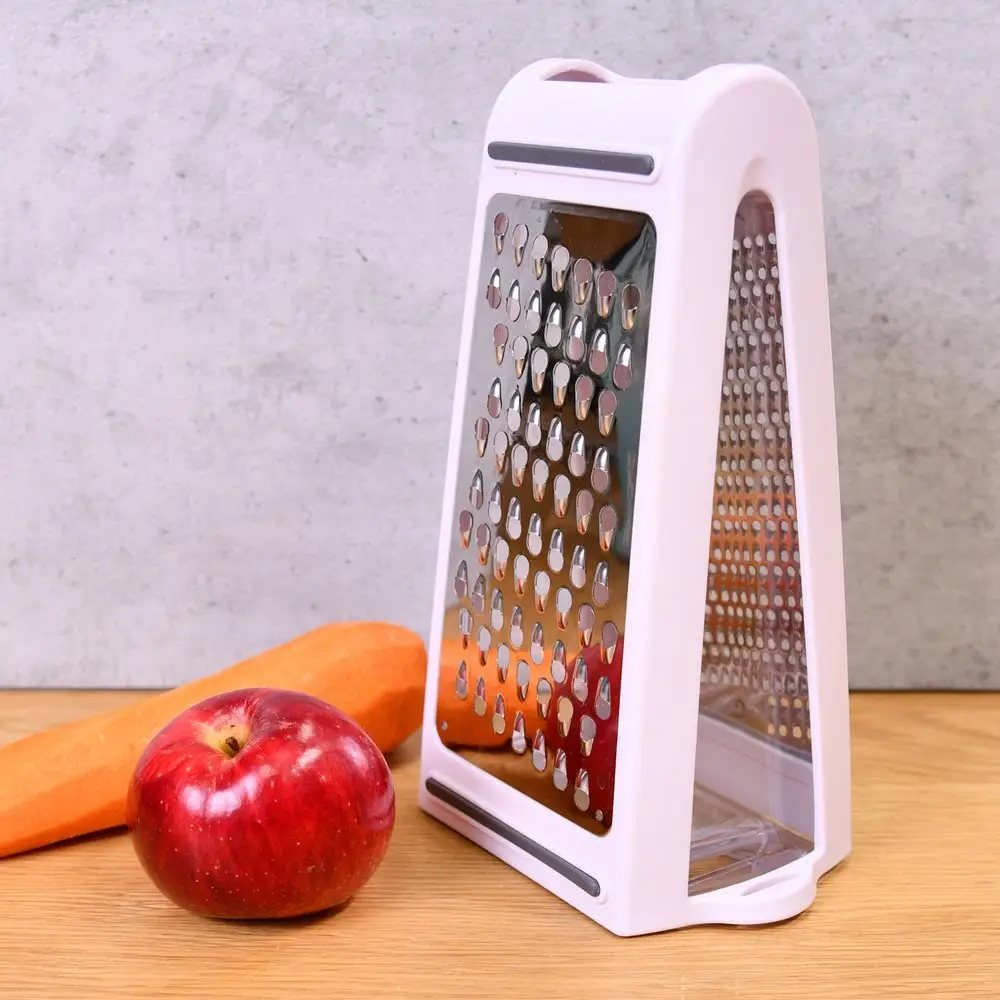 Хотите сделать процесс приготовление на кухне еще более удобным и быстрым? Тогда наша универсальная терка с контейнером - идеальный выбор для вас! Этот кухонный аксессуар обязательно станет вашим незаменимым помощником. Благодаря двум граням разного размера вы сможете легко натереть овощи, сыр, яйца, фрукты и другие продукты. Режущая поверхность терки обладает острыми, двухсторонними сечками, что обеспечивает быструю и эффективную работу. Терку можно использовать как в горизонтальном, так и в вертикальном положении, с контейнером и без него. Контейнер, вставляемый в терку, позволит собирать натертые ингредиенты без рассыпания и сохранить порядок на вашей рабочей поверхности. Нержавеющая сталь гарантирует долгий срок службы терки, а пластиковый корпус и противоскользящие вставки, делают ее легкой и удобной в использовании.