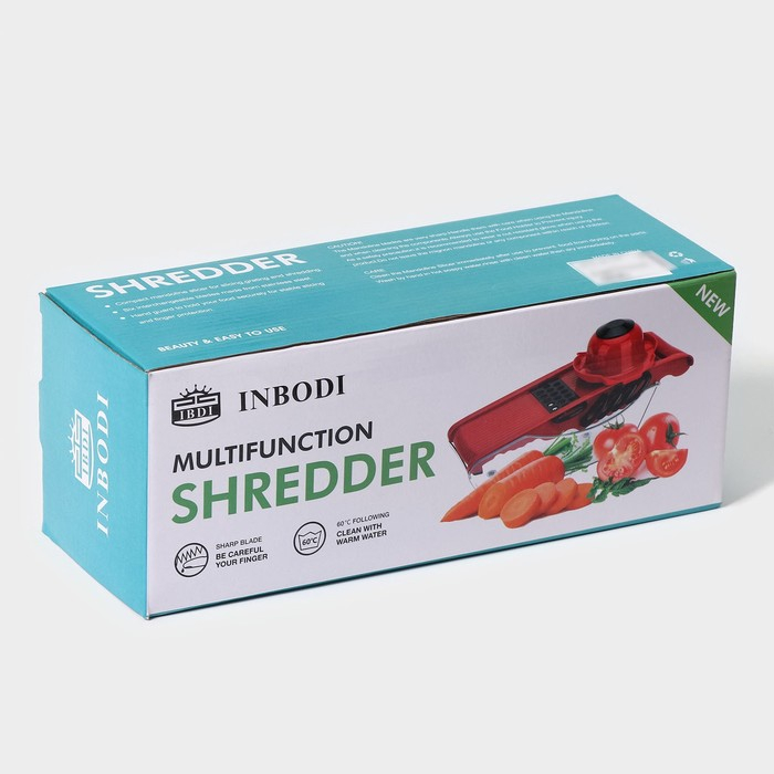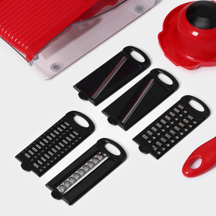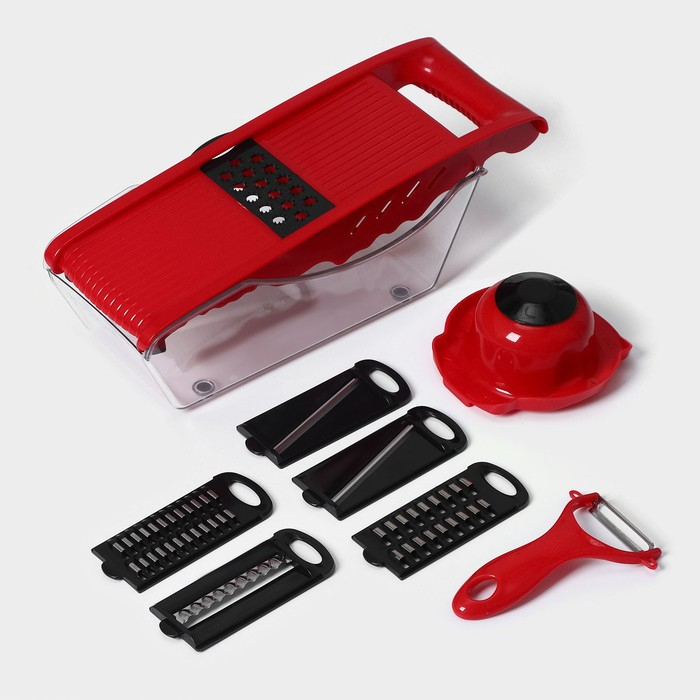 Тёрка с лотком Доляна Vegan, 6 насадок, 30×10,5×11 см, цвет зелёный, овощечистка металлическая, цвет красный