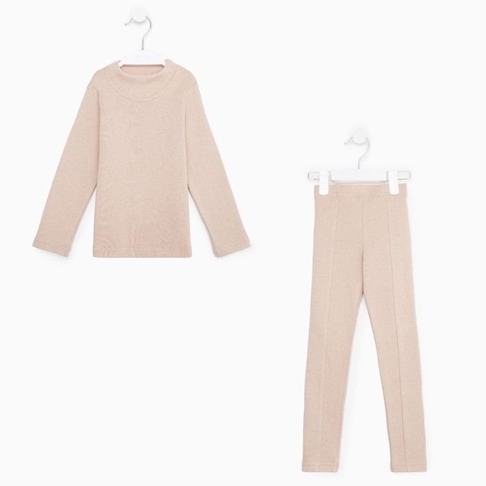 Термобельё для девочки (лонгслив, легинсы) цвет бежевый, рост 128