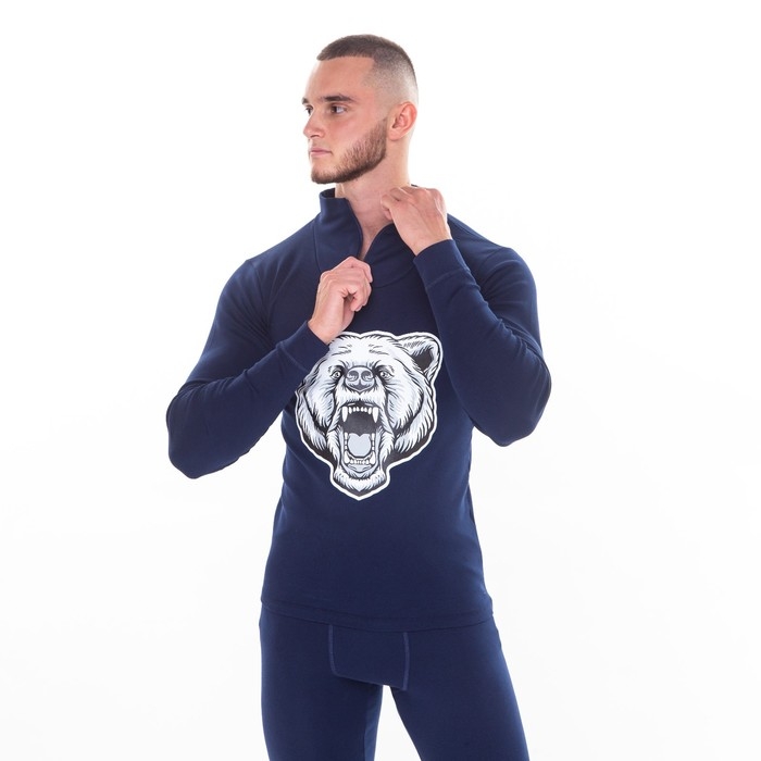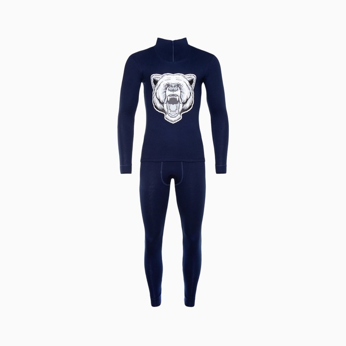 Термобельё мужское НАЧЁС (фуфайка, кальсоны) принт медведь, цвет тёмно-синий, размер 56