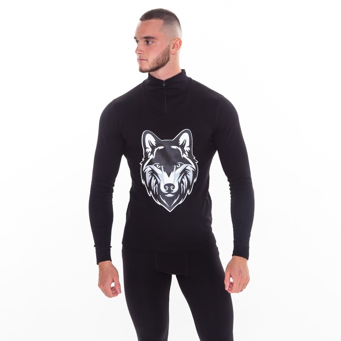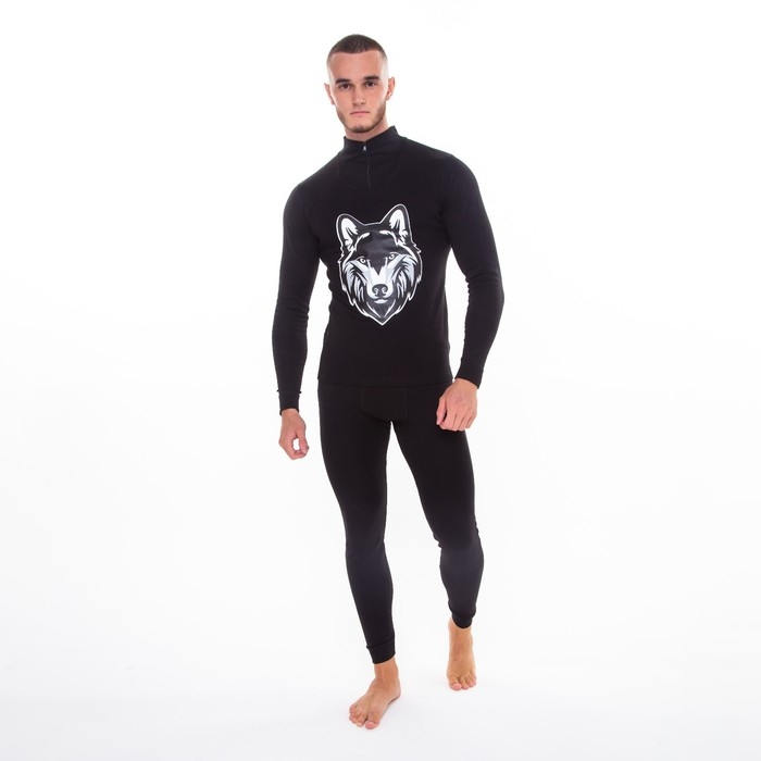 Термобельё мужское НАЧЁС (фуфайка, кальсоны) принт волк, цвет чёрный, размер 54