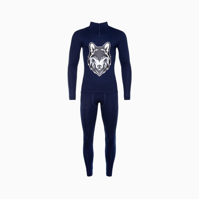 Термобельё мужское НАЧЁС (фуфайка, кальсоны) принт волк, цвет тёмно-синий, размер 50
